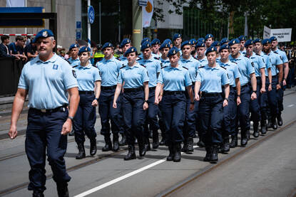 De afgelopen 2 jaar werd Nationale Veteranendag in aangepaste vorm georganiseerd vanwege COVID-19. Dit jaar was het nationale evenement in Den Haag weer terug. Een extra bijzondere editie, want maar liefst 18 detachementen van de krijgsmacht ontvingen een vaandelopschrift van Koning Willem-Alexander. Daarnaast liepen zo’n 3.500 veteranen en militairen, waaronder een detachement Afghanistan-veteranen van de KMar, mee in een defilé door de binnenstad van Den Haag.