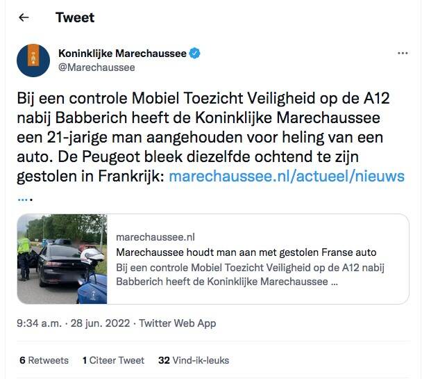 De Marechaussee heeft in de buurt van Heerlen 2 mannen van 29 jaar aangehouden voor mensensmokkel, spookrijden en poging tot doodslag. Zo reed de bestuurder van de auto tijdens een achtervolging tegen het verkeer in en reed hij een motoragent bijna aan. De vluchtauto werd op de A76 bij Heerlen klemgereden.
