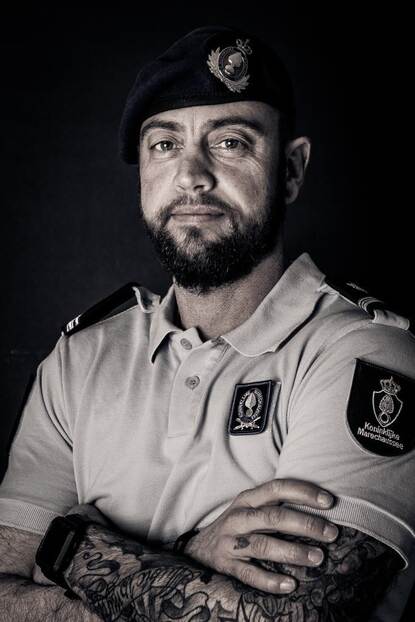 Opperwachtmeester Ruud, medewerker Sociale Veiligheid, Opleidings-, Trainings- en Kenniscentrum Koninklijke Marechaussee (OTCKMar). Ruud valt op mannen.