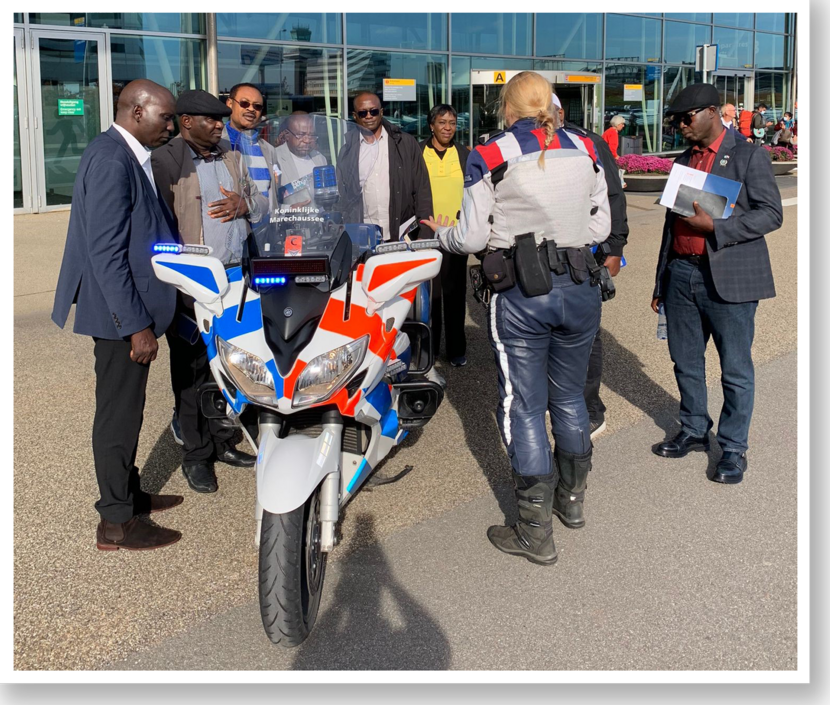 De delegatie uit Nigeria bezoekt ook de Marechaussee op Schiphol.