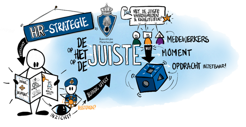 Het is binnen de krijgsmacht een veelgehoorde uitspraak: ‘De mensen staan centraal; zij zijn ons belangrijkste kapitaal’. Dat geldt vooral voor de KMar, begint majoor Talma-van Dam, stafadviseur Strategisch HR Advies. “Maar ieder mens is anders; neemt zijn of haar eigen kwaliteiten, ervaringen, kennis en kunde mee. Het is veel logischer om naar het unieke individu te kijken, in plaats van iedereen over één kam te scheren en hen op basis van ons rangenstramien te laten doorgroeien.”