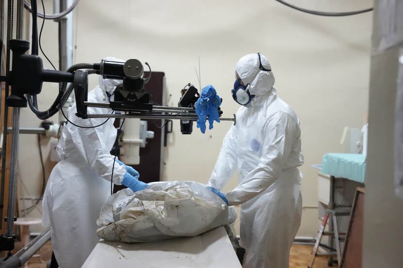 “Mijn ‘digitale’ collega’s lazen middelen uit zoals telefoons en USB-sticks. Hoewel het materieel soms kapot was, wisten de experts elke keer weer waardevolle informatie op tafel te krijgen. Op mijn beurt onderzocht ik met collega’s in een mortuarium lichamen van oorlogsslachtoffers. De resultaten werden via een patholoog-anatoom voor verder onderzoek overgedragen aan de Oekraïense autoriteiten. Dat was niet aan ons.”