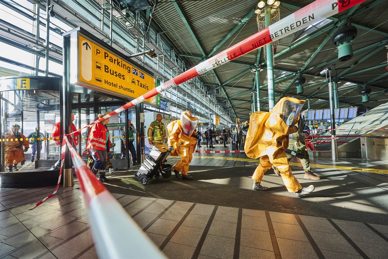 Jeroen: “Die besloot een CBRNE (Chemisch, Biologisch, Radiologisch, Nucleair en Explosieven)-team van Defensie en een gespecialiseerd team van de brandweer op te roepen. Hij had Schiphol Plaza ook al gedeeltelijk af laten zetten met rood-wit lint om een veilig werkgebied te creëren.”