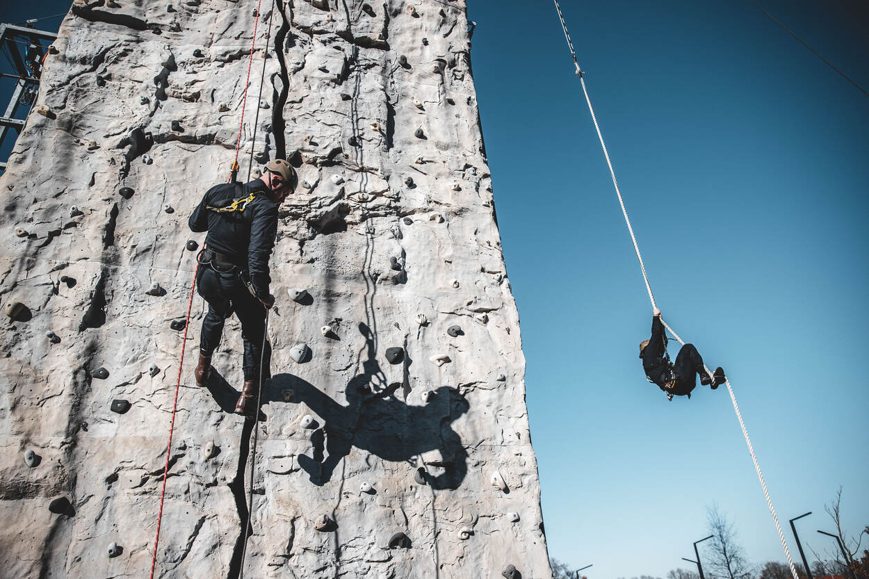 Voor de één is het de hoogte, voor de ander is het de verzuring die parten speelt. ‘Walltopia’ is een uitdaging van het fysieke en de cognitieve component. De instructeurs grijpen ieder moment aan om de toekomstige BSB’ers door de oefening te helpen. Met aanmoediging, aansporing of advies: wat op dat moment nodig is. “Voor sommigen is dit een mindfuck”, zegt adjudant Wouter.