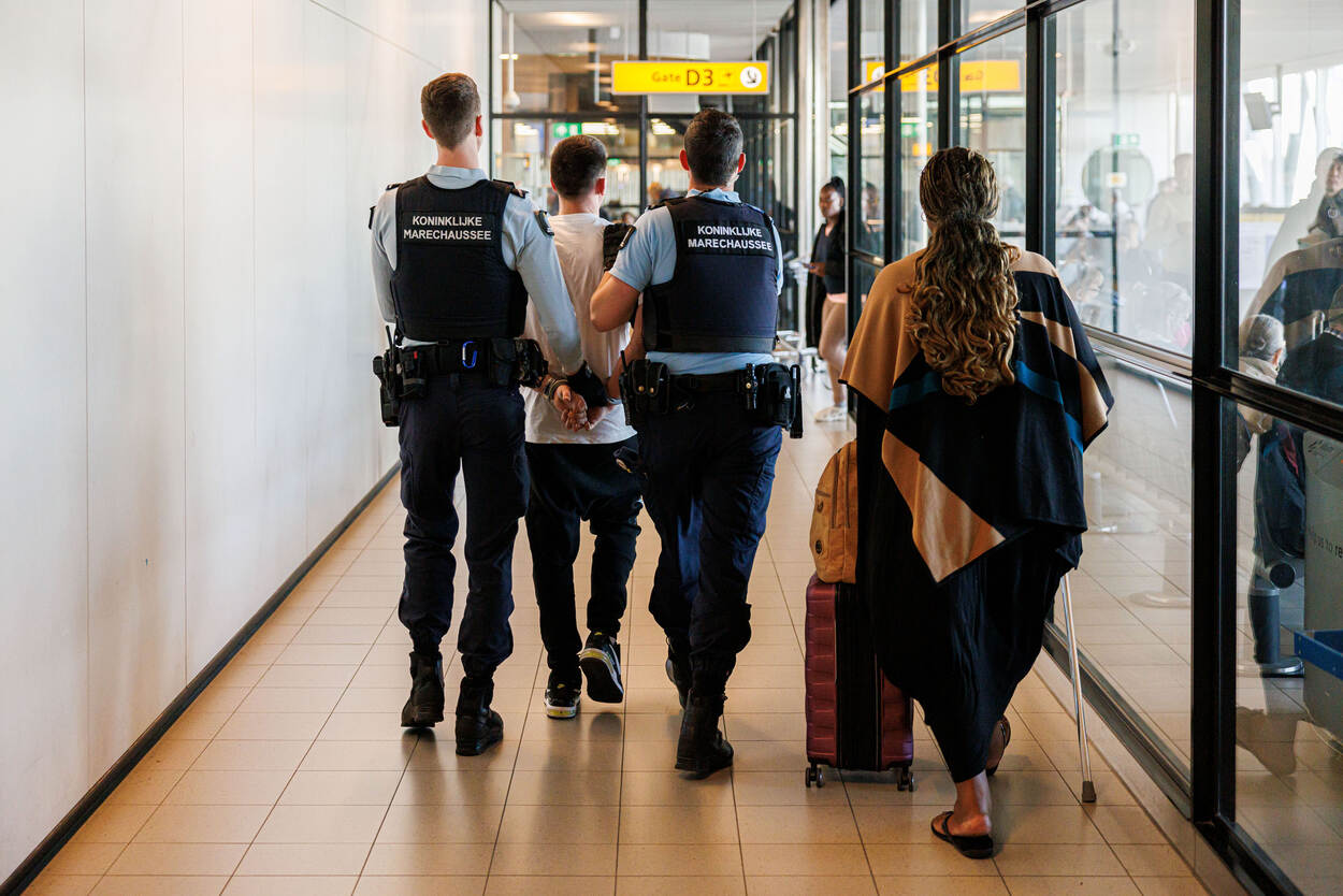 Soms kunnen passagiers zich misdragen. Marechaussees van de brigade Grensbewaking grijpen dan in om de openbare orde te bewaken.