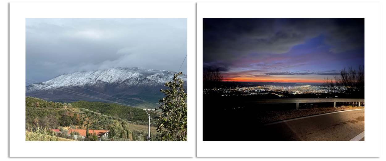 Links: Mount Dajti (Tirana) in de sneeuw. | Rechts: Tirana bij nacht.
