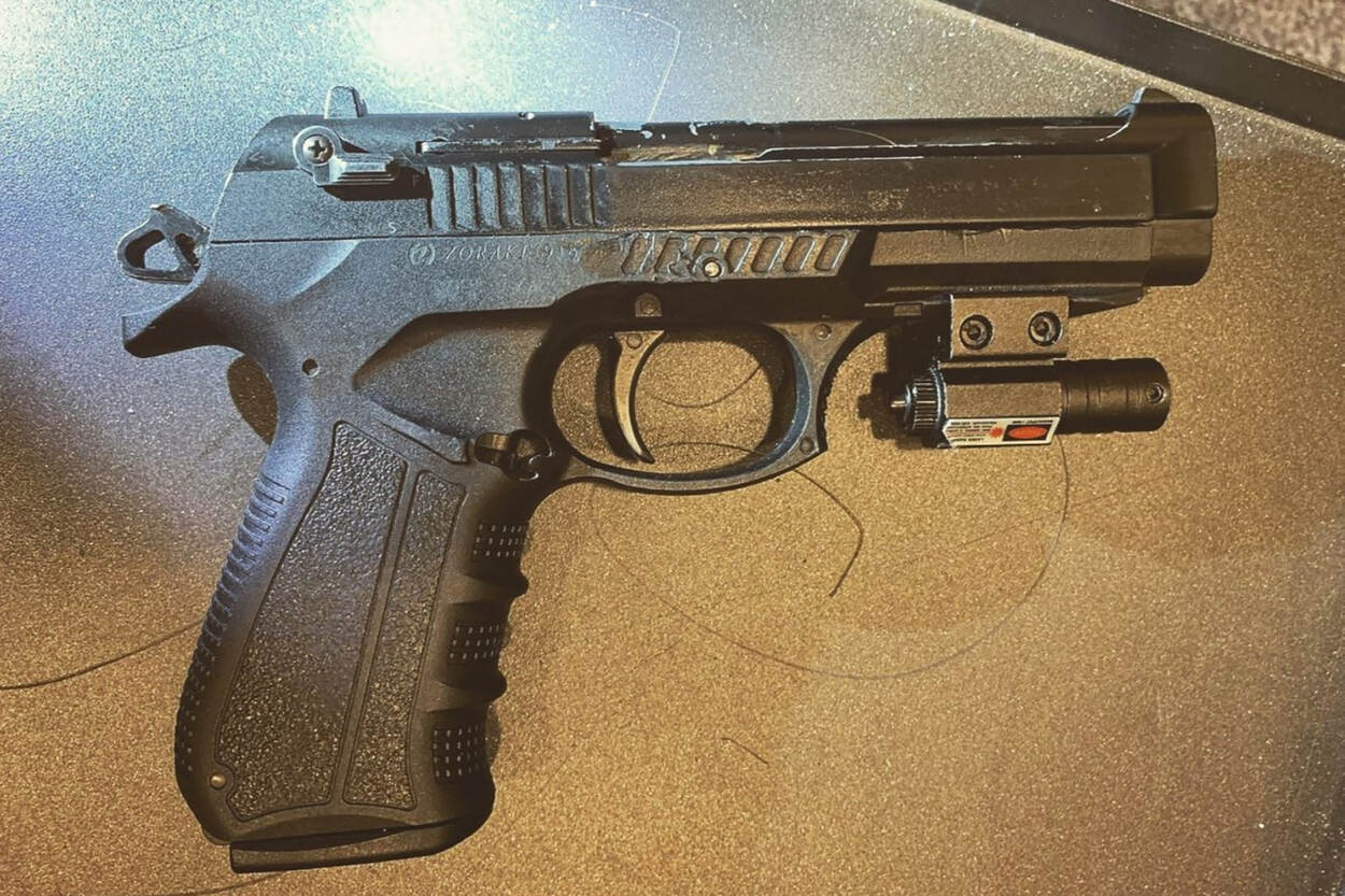 De verdachten (20 en 22 jaar) blijken beiden een omgebouwd alarmpistool op zak te hebben. Normaal gesproken zijn die ongeschikt om scherpe munitie mee te verschieten. Maar door het ombouwen is het mogelijk om 9mm-patronen te gebruiken. Levensgevaarlijk spul, en verboden. De mannen worden gearresteerd en op hun rechten gewezen.