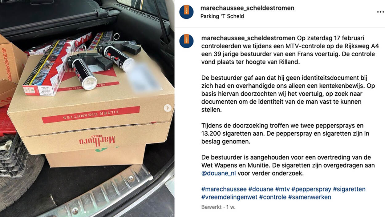 Volgens de woordvoerder van de Marechaussee is de man bij een routinecontrole aangehouden. Die worden regelmatig gehouden in de grensstreek. De woordvoerder noemt de vondst een gelukstreffer. "Al maken we uiteraard wel gebruik van profilering en ervaringen uit het verleden."