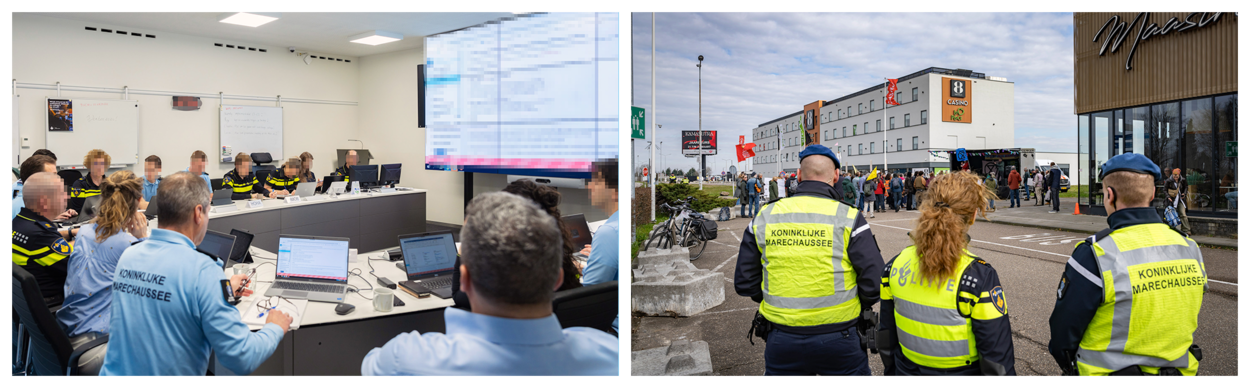 “Er zijn 6 Staven Grootschalig Bijzonder Optreden”, leggen Greet en Evert uit. “Elke Staf Grootschalig Bijzonder Optreden (SGBO) heeft een algemeen commandant, maar we hebben er op dit moment maar 5. De SGBO-staven zijn op dit moment minimaal gevuld en we zoeken collega’s die het leuk vinden om een waardevolle rol te vervullen in een calamiteitenorganisatie. Je moet goed kunnen presteren onder druk. Een SGBO komt in actie als een reguliere eenheid het niet aankan, als het incident te groot wordt. Er moet wel voldoende aanleiding voor zijn. Bij inzetten zoals in Maastricht en Eindhoven zijn er zomaar 150 man op de been. Naast een algemeen commandant nemen onder anderen het Hoofd Operaties (HOPS), Hoofd Informatie (HIN) en het Hoofd Ordehandhaving (HOHA) plaats in een SGBO. Als er demonstraties plaatsvinden weten we dat vrij ver van te voren, maar er zijn natuurlijk ook ad hoc-inzetten. Wij hebben 24/7 een actiecentrum op het Operatiecentrum (OPSCENT). Als algemeen commandant heb je één keer in de 6 weken piket. Als er iets gebeurt, dan gaat diegene erop af. Bekende gebeurtenissen waarbij we betrokken waren zijn bijvoorbeeld de demonstraties van de boeren op Schiphol en de Nuclear Security Summit (NSS) in 2014. Als een lid van het Koninklijk Huis overlijdt, is de SGBO verantwoordelijk voor de coördinatie en de operationele uitvoering van de KMar-taken.”