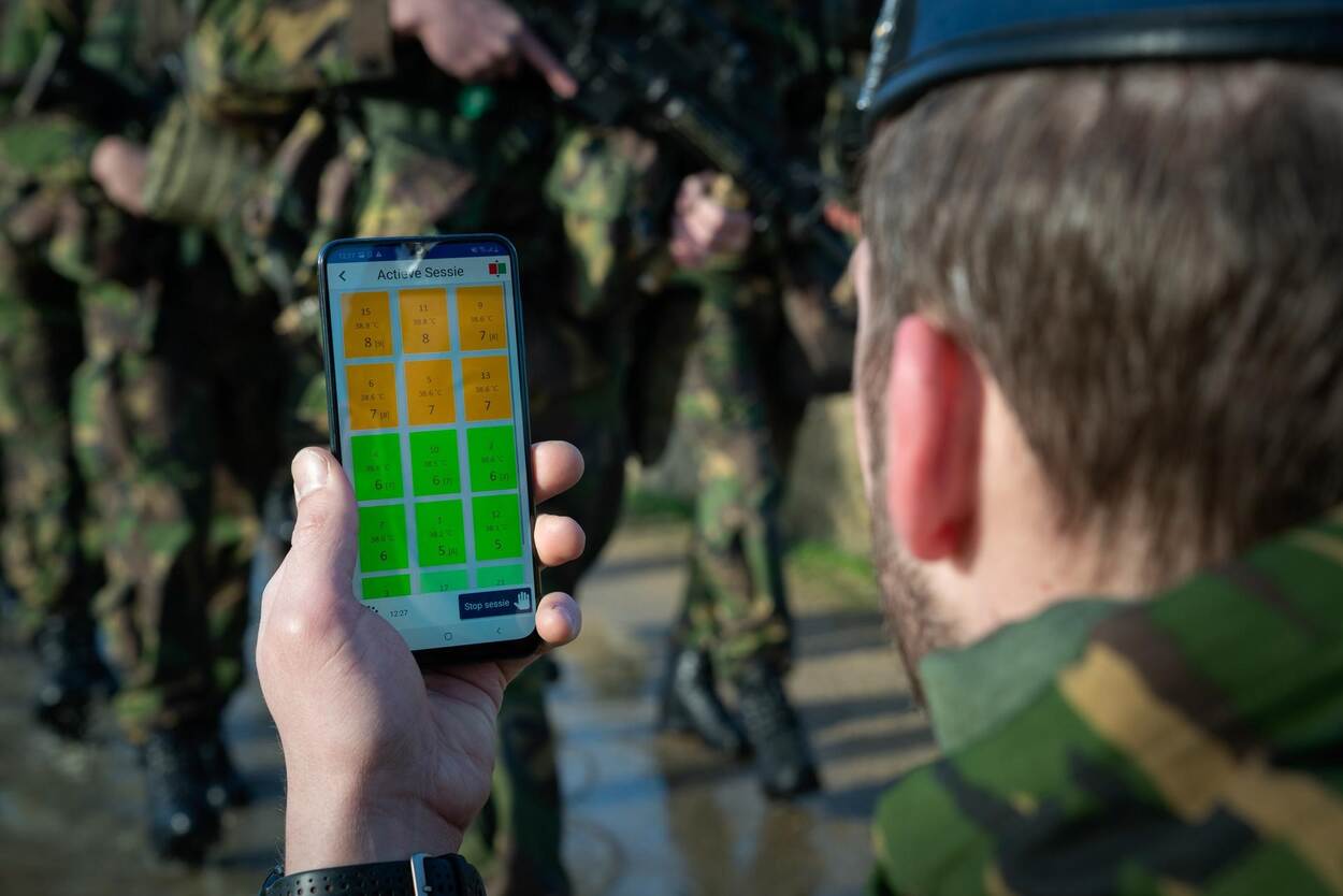Met speciale meetapparatuur kunnen instructeurs live zien wat de ‘hittestatus’ is van hun leerlingen. Zo kunnen ze op tijd ingrijpen als de waardes te hoog op dreigen te lopen.
