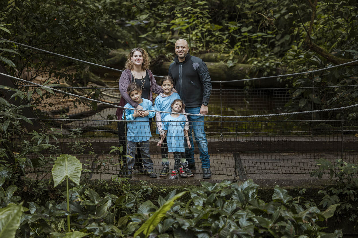 De precieze locatie van de eerste Remigratiecontactdag is het Safari Meeting Centre, in de bush van het dierenpark. Te midden van de grote bomen en planten leven daar onder meer aardvarkens, ibissen en neushoornvogels. Het is er warm, benauwd bijna. Een tropisch temperatuurtje dat we in Nederland niet kennen. Maar voor Sam (42), Fay (38), Farah (9), Amari (8) en Nadiya (5) is het normaal geworden. Sam, werkzaam bij de BiCulturele KMar, en zijn vrouw Fay woonden en werkten van 2013 tot 2016 op Bonaire. Farah werd daar geboren, Fay was hoogzwanger van Amari bij terugkomst. In de zomer van 2022 vertrok het inmiddels 5-koppige gezin opnieuw naar Caribisch gebied, ditmaal naar Curaçao waar Sam aan de slag ging in de handhaving op de luchthaven. Sinds afgelopen zomer is het gezin terug in Nederland.