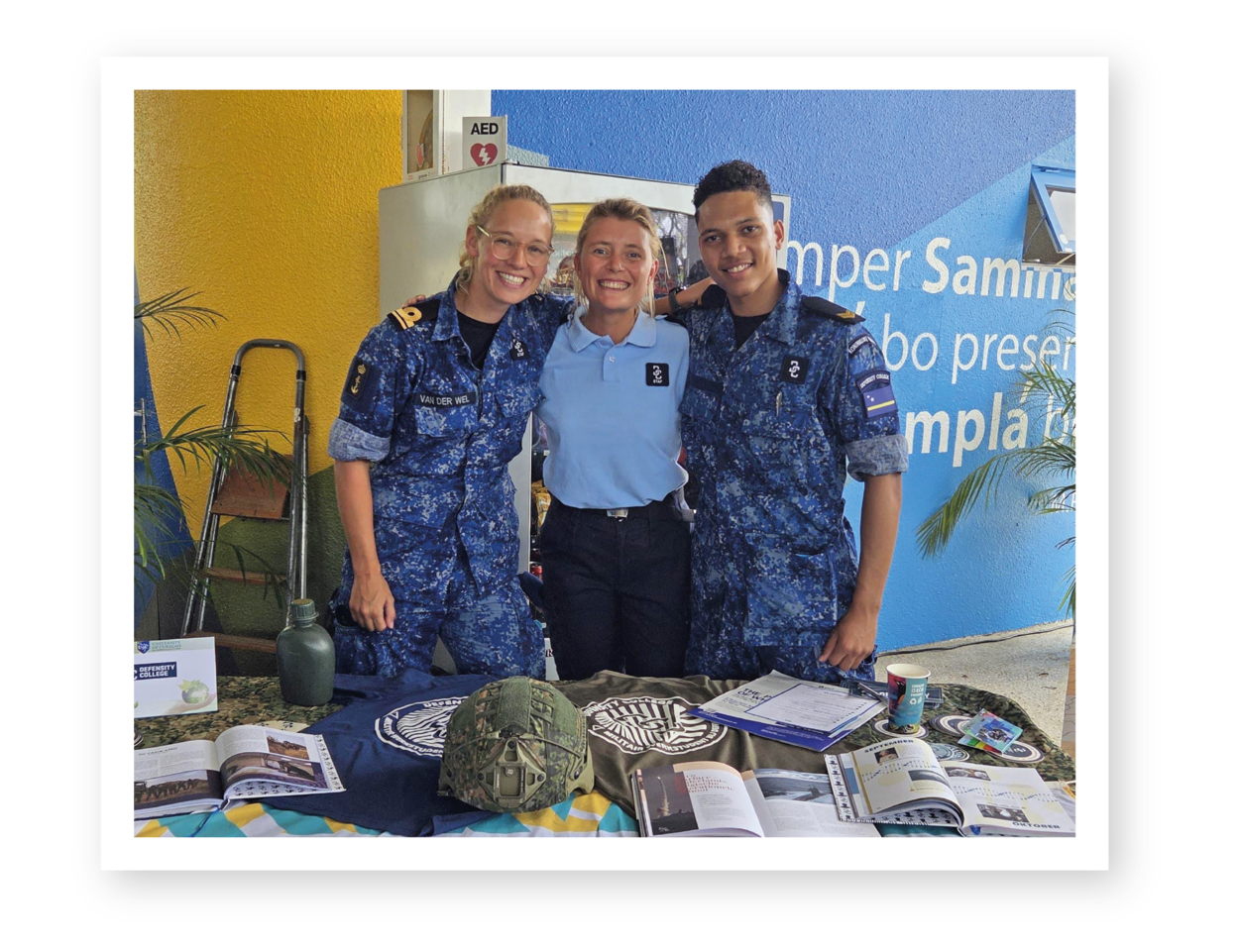 Voorheen was het DC-programma voornamelijk gericht op studenten uit Nederland, terwijl ons Koninkrijk natuurlijk verder reikt. Samen met mijn marinecollega Marleen mag ik het Defensity College Carib-programma verder ontwikkelen en professionaliseren. Op Curaçao werden de eerste stappen gezet richting het werven van werkstudenten aan de Universiteit van Curaçao. In mei 2024 is het programma hier van start gegaan als pilot en inmiddels zijn er 14 militair werkstudenten actief.