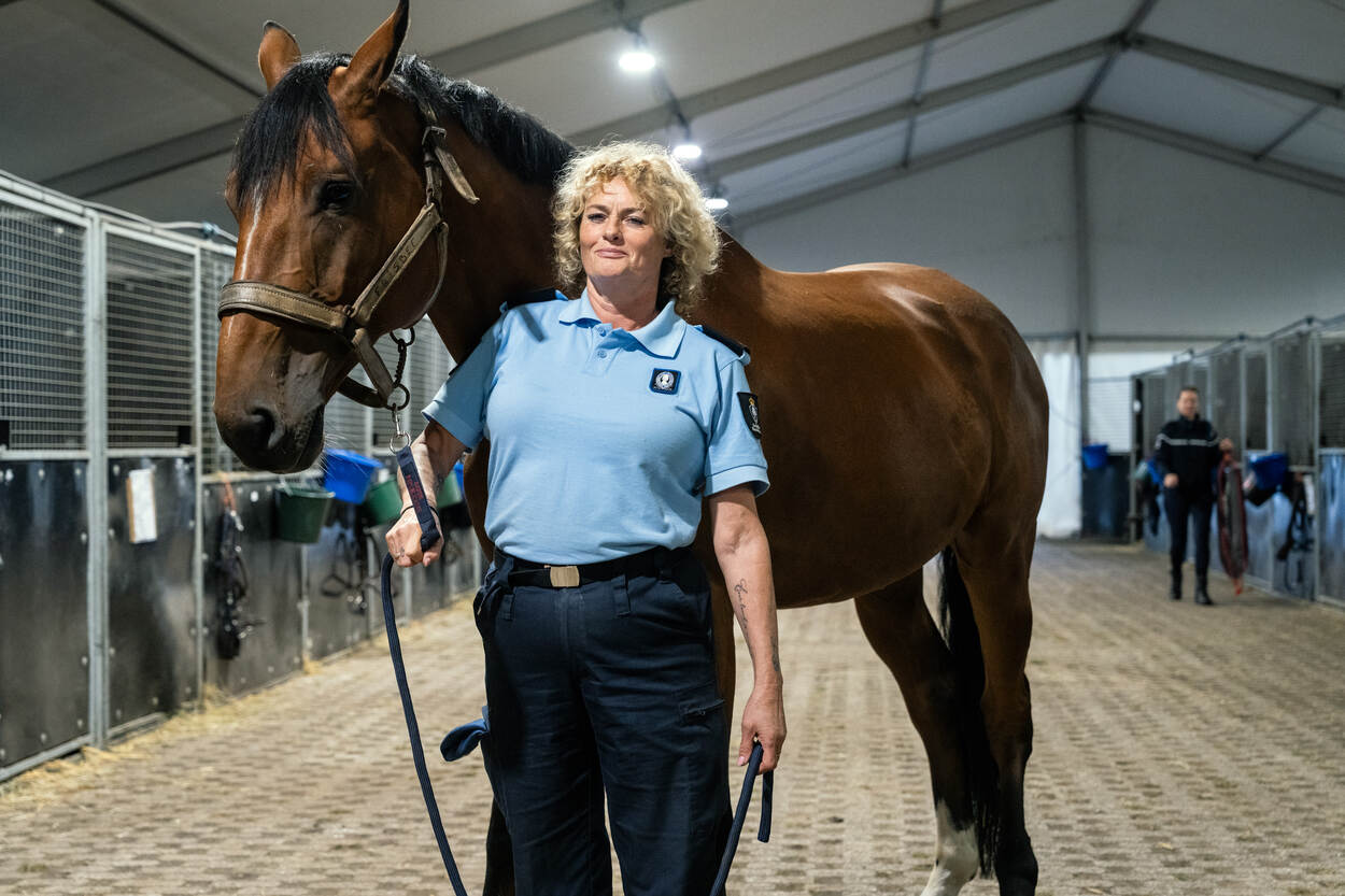 In Frankrijk werden de paarden na een uitgebreide check overgedragen aan de marechaussees. Woensdagmiddag arriveerde de stoet met trailers op Renbaan Duindigt in Wassenaar, waar de dieren met open armen werden ontvangen door collega’s van de Bereden Brigade. Ida: “Alles stond al klaar. Er lag lekker vers stro in de stallen en de naambordjes en dieetlijsten hingen op de deur. Dat is zeker belangrijk. Ieder dier heeft zijn eigen behoefte. De Fransen kennen de paarden natuurlijk het beste. Zij sturen daarom naast een aantal instructeurs, ook een hoefsmid en dierenarts mee die ons begeleiden in de verzorging.”