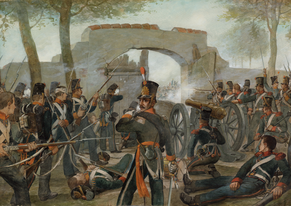Quatre-Bras en Waterloo, de grote wapenfeiten van voorlopers van het regiment in de oorlog tegen Napoleon. Bij Quatre-Bras, een strategisch gelegen kruispunt op de weg van Charleroi naar Brussel, leverden de Nederlandse eenheden op 15 en 16 juni 1815 zware gevechten met de Fransen. In de Slag bij Waterloo wisten de Nederlandse eenheden ondanks zware verliezen de Franse troepen te weerstaan. De tijd die ze daarmee wonnen, gaf oprukkende geallieerde eenheden gelegenheid om een nieuwe aanval op Napoleons legers in te zetten. Aan het einde van 18 juni vond de Franse keizer zijn Waterloo.