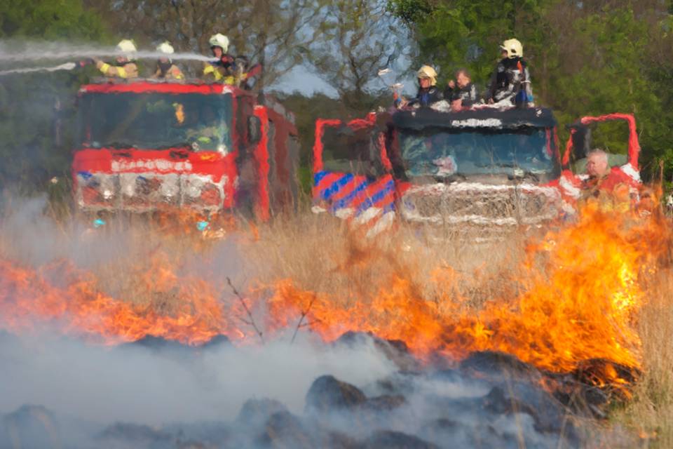 “Bos- en heidebranden op de schietterreinen zijn voor ons dagelijkse kost”, zegt Dick van Hoorn, commandant van een van de blusploegen op het ASK. “Onze jongens doen niet anders. We brengen hier dus een schat aan ervaring in. Of we die op het ASK inzetten of bij de buren; dat maakt niet uit.”
