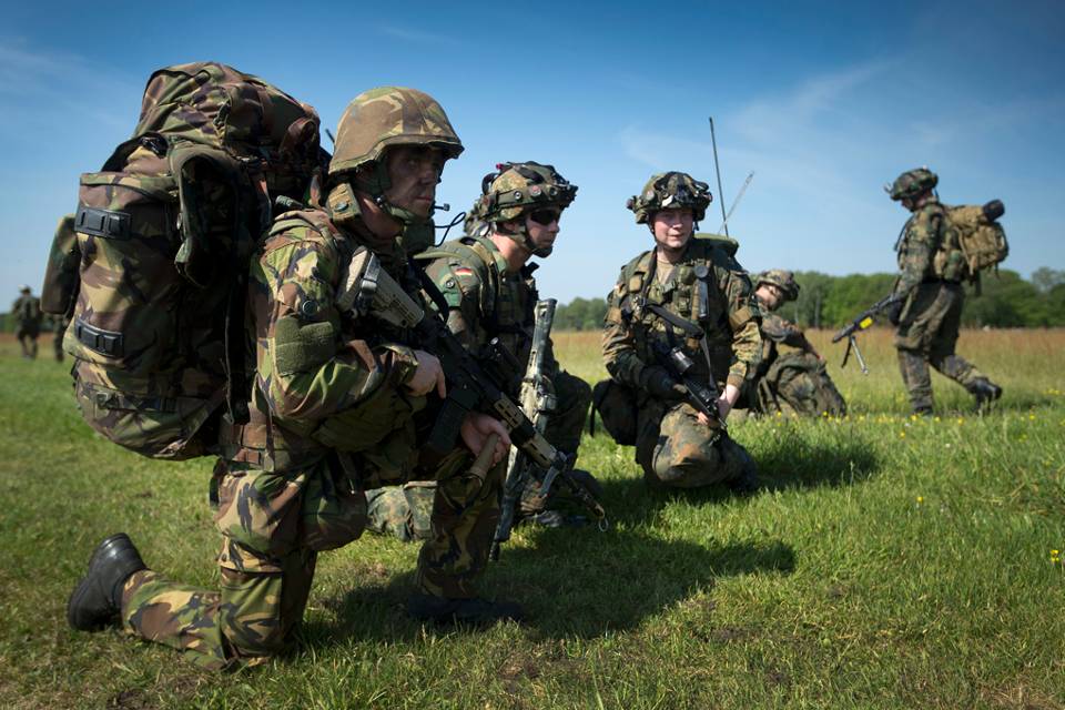 Tijdens oefening Reliable Sword (mei 2014) trekken Nederlandse en Duitse troepen samen op.