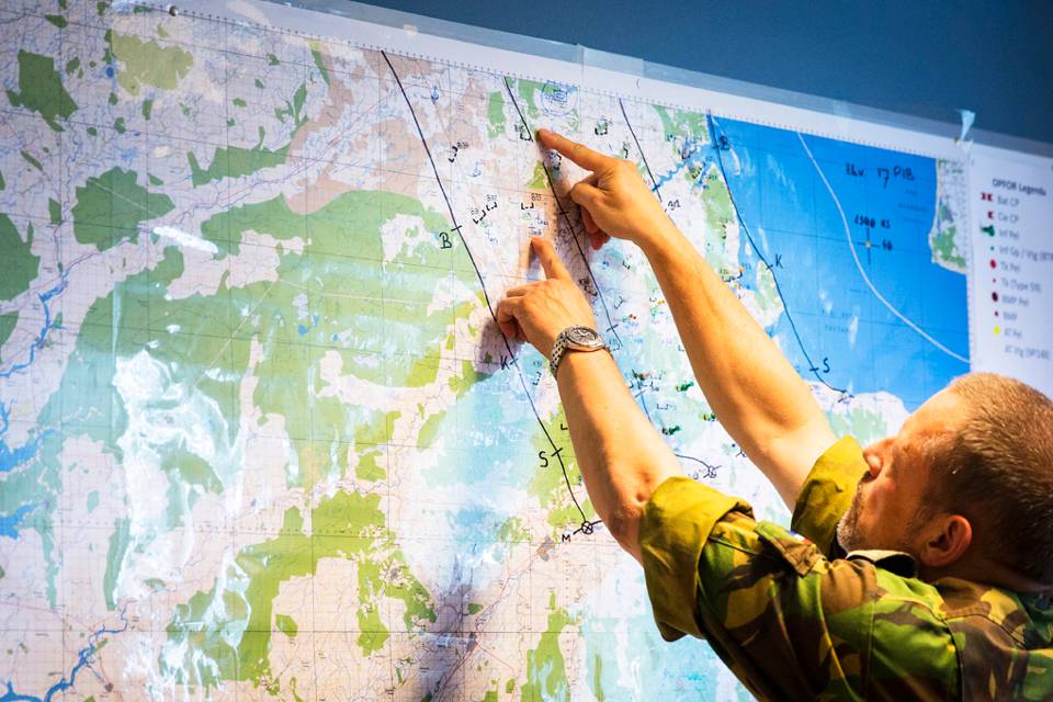 “Lui, luister even”, roept kapitein Wolf Berendsen, chief ops-room. “We hebben een nieuwe situatie. De Bravo- en Charlie compagnie verplaatsen behoorlijk snel. Ze stuiten niet meer op vijandelijke eenheden.”