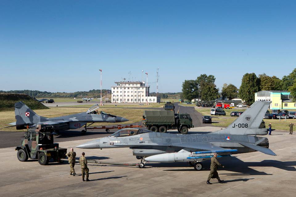 Malbork is de thuishaven van een squadron MiG-29’s (achtergrond). Deze Poolse jagers vliegen geregeld trainingsmissies met de Nederlandse F-16’s.