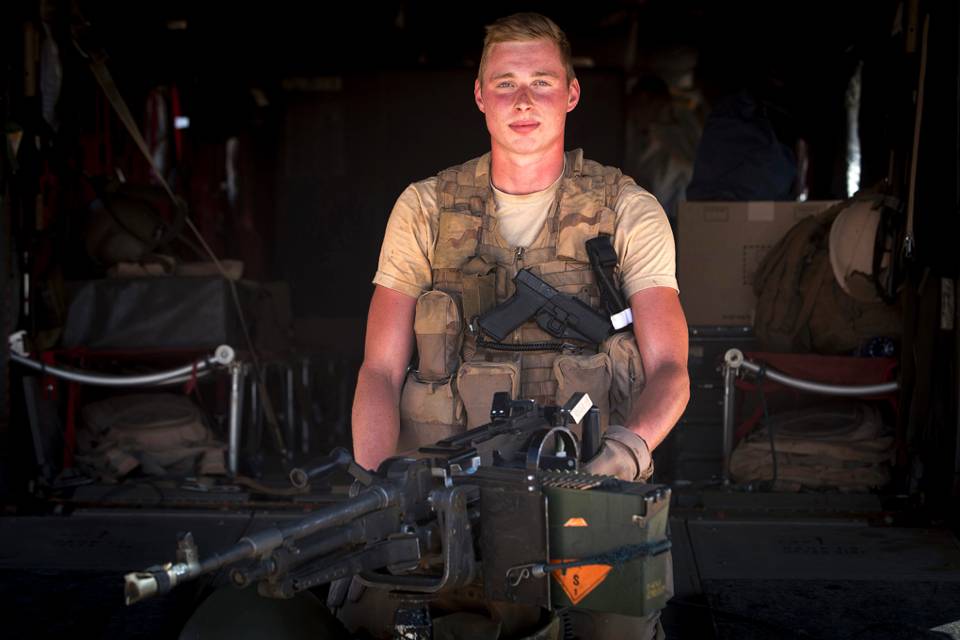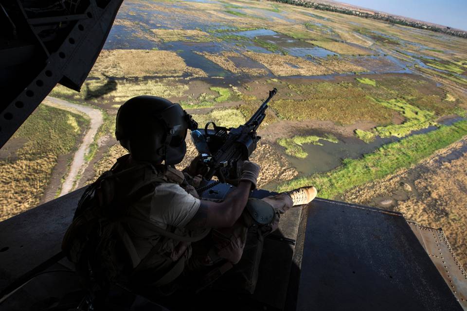 “Komen wij om welke reden dan ook onder vuur te liggen, dan biedt de MAG op de ramp dekking. Als boordschutter op de Chinook voel ik de verantwoordelijkheid om kist en crew te beschermen. Niet dat ik trouwens dreiging voel als we boven Mali vliegen. De intell-briefings zijn perfect en je merkt aan alles dat de bemanning is gefocust op de veiligheid. Ik heb nog geen patroon verschoten, terwijl ik toch al veel gevlogen heb. Het moeilijkst aan mijn job? De beslissing om daadwerkelijk vuur uit te brengen. Als ik de trekker overhaal, moet er wel een heel goede reden zijn, maar als het echt nodig is, moet het wél snel gebeuren.”