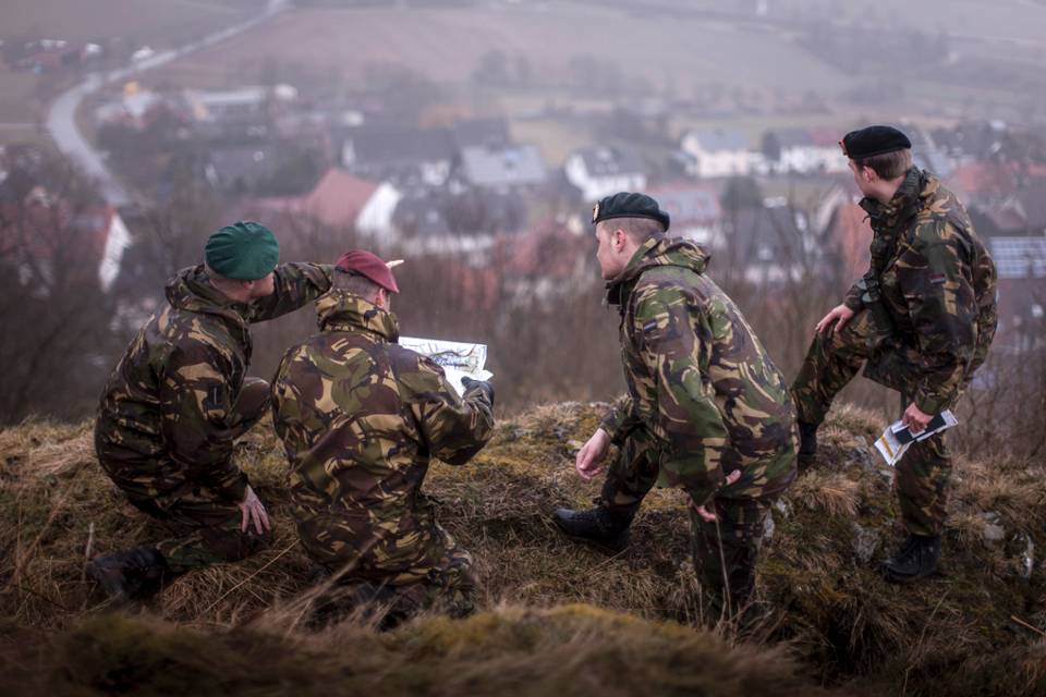 De majoorsopleiding te velde. De cursisten gaan daadwerkelijk naar Duitsland om te zien of hun plan werkt.