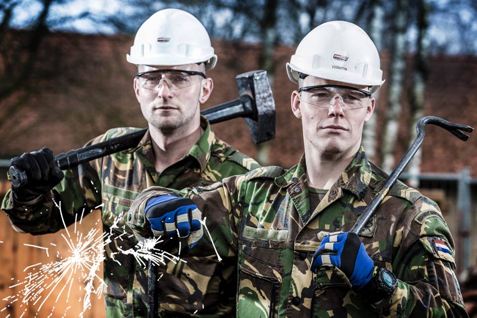 Met dit MBO-3 diploma op zak vergroten Redmar en Jeroen hun carrièremogelijkheden aanzienlijk, weet Stip. “Het diploma opent deuren bij zowel hun doorstroom als een eventuele uitstroom. Het geeft ze de mogelijkheid om als goede korporaal de onderofficiersopleiding op de KMS te volgen en daarna als specialist terug te keren binnen de genie. Daarnaast past deze opleiding uitstekend binnen het Optreden Verstedelijkt Gebied (OVG), waar genisten bebouwing met schade moeten kunnen inschatten op bruikbaarheid en gevaren. Maar ook als ze later Defensie verlaten zijn ze met dit diploma én hun leidinggevende skills gewilde mannen binnen de civiele sloperswereld.”