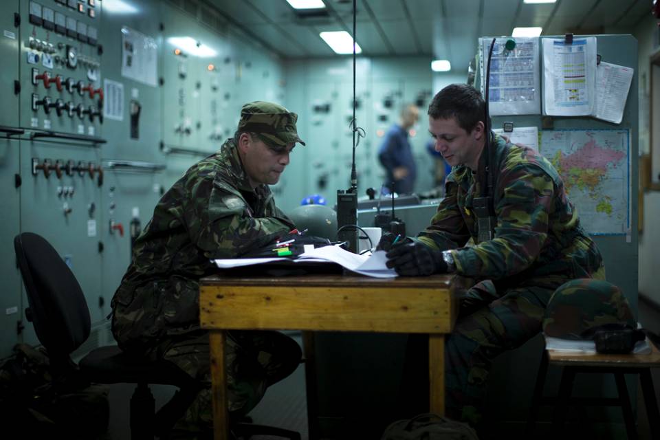 Hij is niet de enige die enthousiast is. Alle Belgen en Nederlanders staan te trappelen om te beginnen met searchen. Na kort overleg is het zover. Met getrokken wapens bestormen de mannen het schip. Na de achtersteven te hebben veiliggesteld, worden in overleg de eerste ‘zwaartepunten’ van de zoektocht aangegeven. “We delen wat we hebben gezien en splitsen op om buddygewijs te gaan zoeken,” gaat de OPC verder.