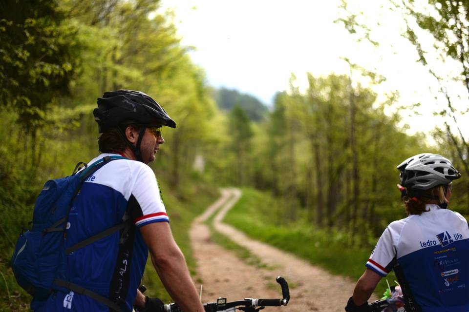 “Dat klopt. Mijn interesse werd gewekt door de organisatie Ledro4life, die een mountainbiketocht rond het Italiaanse Ledromeer had uitgezet met als doel geld inzamelen voor ALS. Ik mailde de initiatiefnemers dat ik die ziekte had en vroeg of ik mee mocht doen. Vervolgens heb ik een uur met de organisator aan de telefoon gehangen. Eenmaal in Italië stond ik versteld van de saamhorigheid. Tijdens de tocht liep ik te hard van stapel. Ik ben een dieseltje, maar wilde té graag. Na een korte pauze om hartslag en ademhaling op peil te krijgen, stapte ik weer op de fiets. Ik kwam op een punt waar niemand me verwachtte; bovenop een helling met een stijgingspercentage van 20 procent. Esther en mijn zoons moedigden me aan en zelfs mijn regimentsadjudant stond langs de kant om me een hart onder de riem te steken. Het was bijzonder emotioneel hem daar te zien.”
