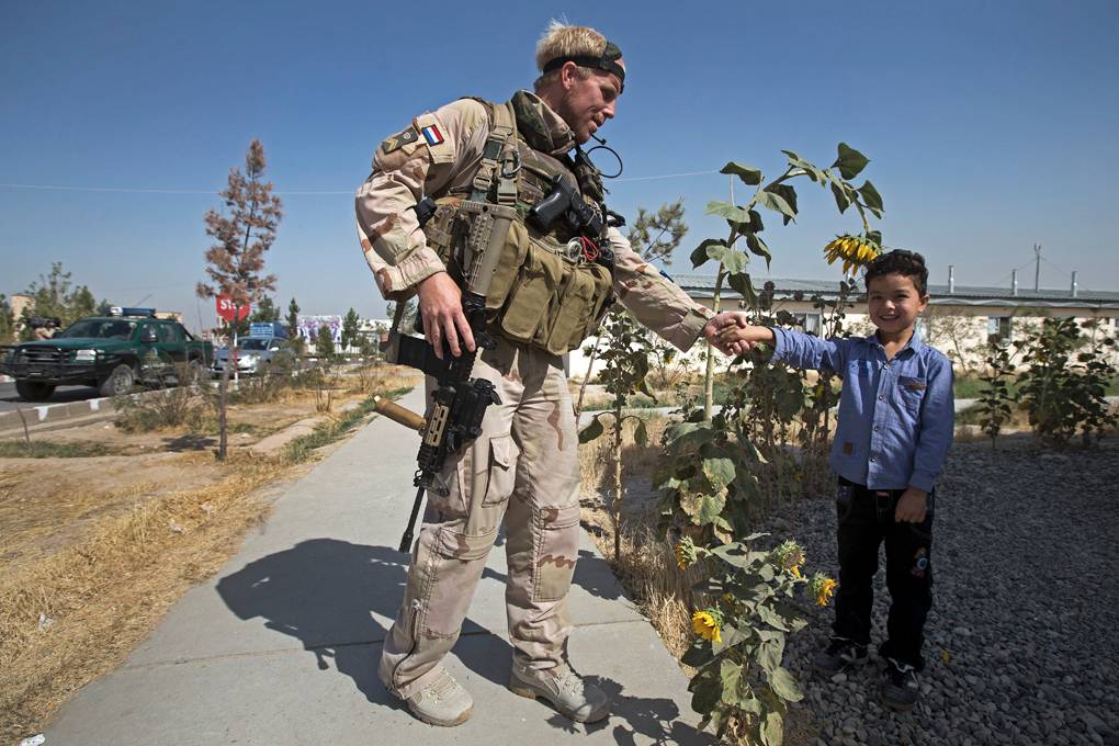 Nederland levert met 100 militairen een flinke bijdrage aan de internationale missie. Vanuit het noordelijk gelegen Mazar-e-Sharif draait het om een tiental militair adviseurs die contact onderhouden met hoge Afghaanse functionarissen, over gehouden en geplande operaties. De overige militairen zitten er vooral om de adviseurs op logistiek, medisch en staf-gebied te ondersteunen. Of, zoals in het geval van groepscommandant Force Protection sergeant-1 Sietse, voor hun bescherming.