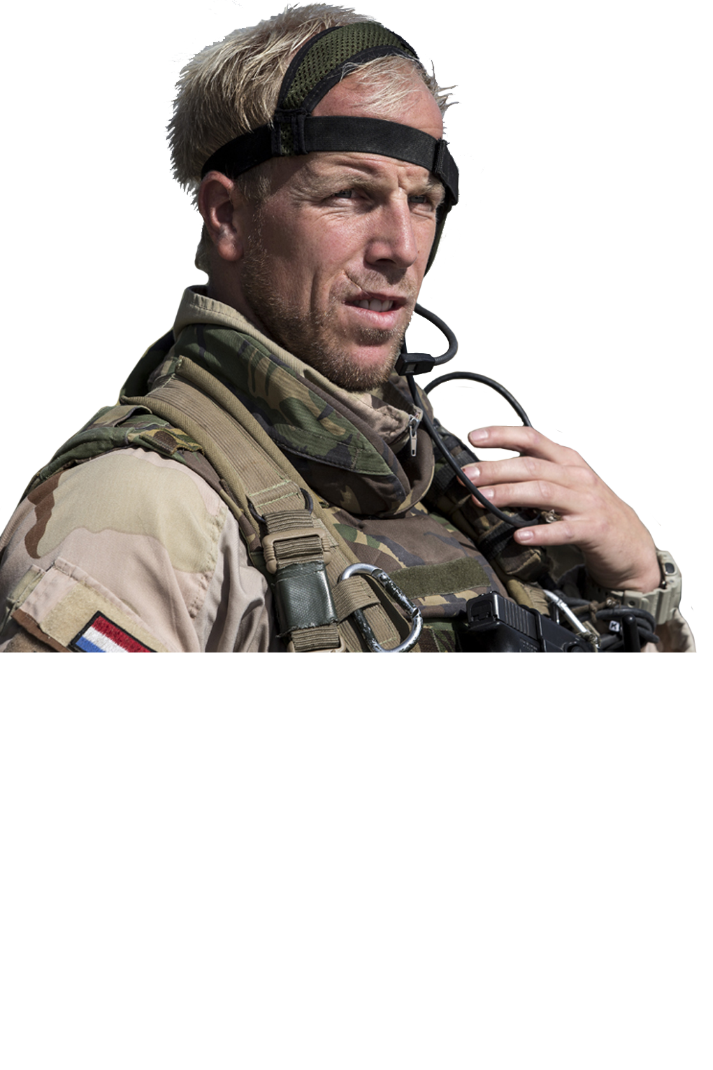 Sietse zorgt voor de veiligheid van adviseurs buiten de poort. De sergeant is ondanks zijn leeftijd van 32 jaar toch al een oude rot in het vak te noemen. Resolute Support is zijn 4e uitzending.
