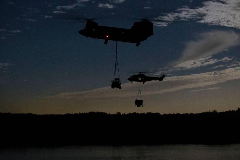 De heli’s trainen het luchtmobiel verhuizen ook bij duisternis.