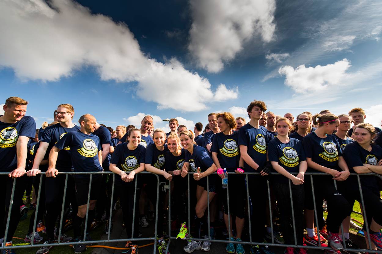 Bij de start doet elke groep een warming-up om goed voorbereid aan de sportieve uitdaging te beginnen. Op harde beats springen de deelnemers op en neer, doen ze push-ups en squats. “Lekker diep gaan! Keurig!”, roept de sportinstructrice bemoedigend. Om de paar minuten gaat een nieuwe afdeling over de startlijn. Sporters ploegen door het mulle zand, lopen over asfalt, rennen door het bos en snellen over de heide. Ook waden ze door sloten, terwijl er om hen heen wordt ‘geschoten’. Een van de deelnemers gooit voor de grap haar handen in de lucht: “Ik geef me over!”.