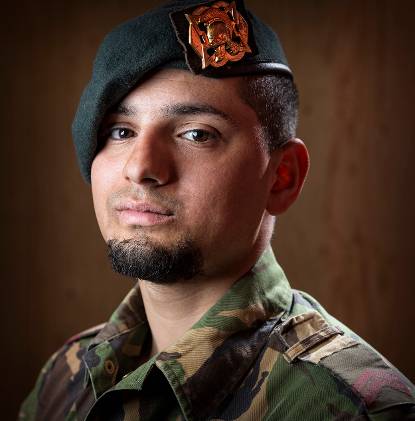 “Na een oriëntatiejaar ben ik in 2007 bij 42 Pantserinfanteriebataljon in Oirschot begonnen. In 2011 ben ik overgestapt naar 101 Geniebataljon, op de Prinses Margrietkazerne in Wezep. Bij de genie kun je een vak leren waar je in de burgermaatschappij wat aan hebt. Een infanterist schiet en gaat voorwaarts. In de civiele samenleving kun je daar niets mee. In Wezep heb ik de opleiding voor elektromonteur gevolgd. Ik heb een diploma voertuigtechniek, maar wilde niet langer vieze olie aan mijn handen. Met draden werken is veel schoner. De functie van elektromonteur bevalt prima. Ik kan me goed ontwikkelen. Aangezien er vrijwel elke dag nieuwe technieken op de markt komen, blijf je doorleren. Gevaarlijk beroep? Ja, want stroom zie je niet, maar kun je alleen meten. Doet een monteur iets verkeerd, krijgt hij een stroomstoot.”