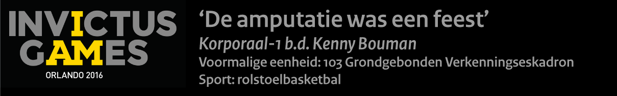 Maar het leed was daarmee voor Bouman niet voorbij. “Buiten mijn lichamelijke verwondingen heb ik ook psychisch letsel”, legt hij uit. Dat deze Invictus Games speciaal stilstaan bij het niet zichtbare leed van (oud-) militairen vindt hij ‘heel goed’. Zijn echtgenote sleept hem door de moeilijke tijden en spoort hem aan erover te praten met professionals.