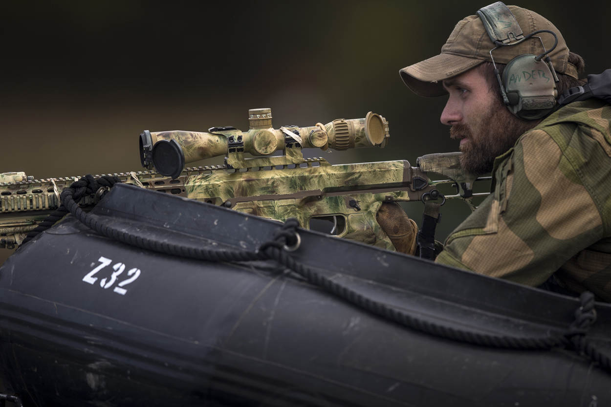 Voordat hij door zijn vizier tuurt, taxeert een Noorse sluipschutter de omgeving. De Noren wonnen de 2016 Best Squad Sniper Competition.