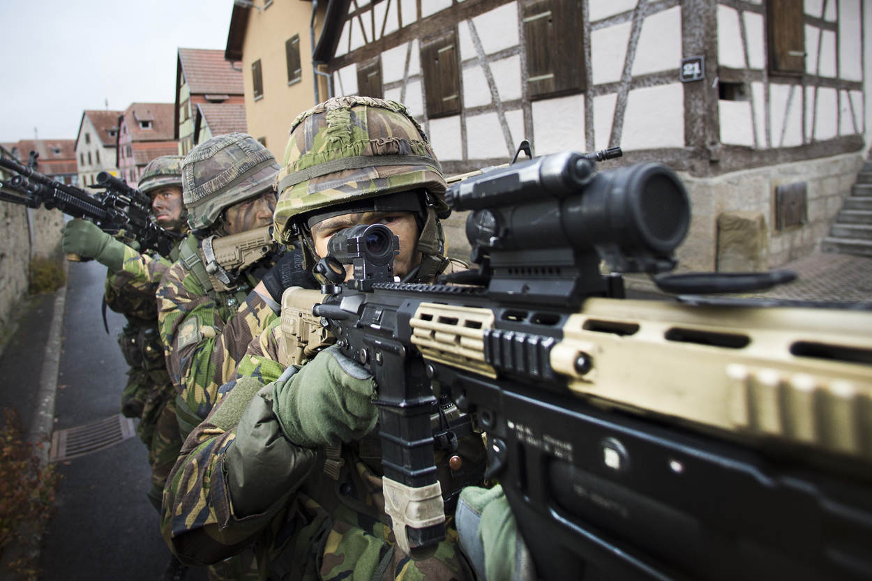 Hammelburg: het thuis van dé Duitse infanterieschool. Dat kun je letterlijk nemen, want de Truppenübungsplatz vormt een walhalla voor optreden in verstedelijkt gebied. Zo’n 300 militairen van 13 Lichte Brigade, zowel infanteristen als genisten, leefden zich uit in de Beierse oefendorpen.