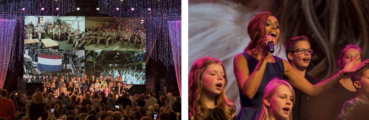 Vooral tijdens live-verbindingen met militairen in 5 missiegebieden vloeien tranen rijkelijk. “Papa! Ik heb de oranje band gehaald met judo en vorige week gewonnen met zwemmen”. Een klein meisje praat zo snel tegen haar zwaaiende vader op het scherm, dat ze bijna struikelt over haar eigen woorden.