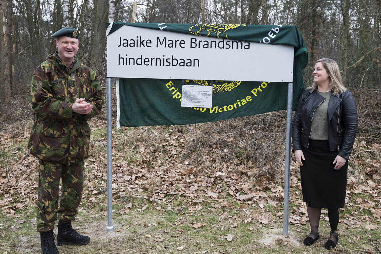 Uruzgan-veteraan en Invictus Games-atlete Jaaike Brandsma heeft sinds 7 maart haar ‘eigen’ hindernisbaan. Op Legerplaats Ermelo onthulde zij met commandant 400 Geneeskundig Bataljon luitenant-kolonel Peter Meijer het naambord.