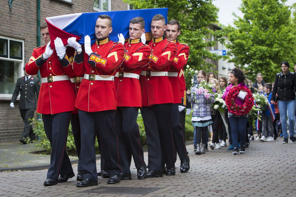 De ingetogen ceremonie op 18 mei werd aangekleed met militair ceremonieel en vond plaats in aanwezigheid van nabestaanden en collega’s.