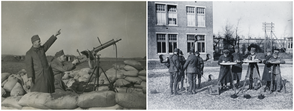 Mitrailleurs vormden in het begin een belangrijk onderdeel van de Nederlandse luchtafweer. Om vliegtuigen vroeger te signaleren werden grote ‘gehoorapparaten’ uitgeprobeerd om het luchtdoelgeschut effectiever te maken.