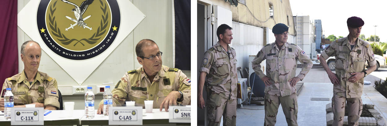Luitenant-generaal Leo Beulen bracht in juni samen met commandant 11 LMB brigadegeneraal Kees Matthijssen een bezoek aan de Capacity Building Mission Iraq (CBMI). Ze spraken in Erbil met de uitgezonden militairen over de trainingen. Ook de Nederlandse ervaringsopbouw en de mogelijke toekomst van de missie kwamen aan bod.