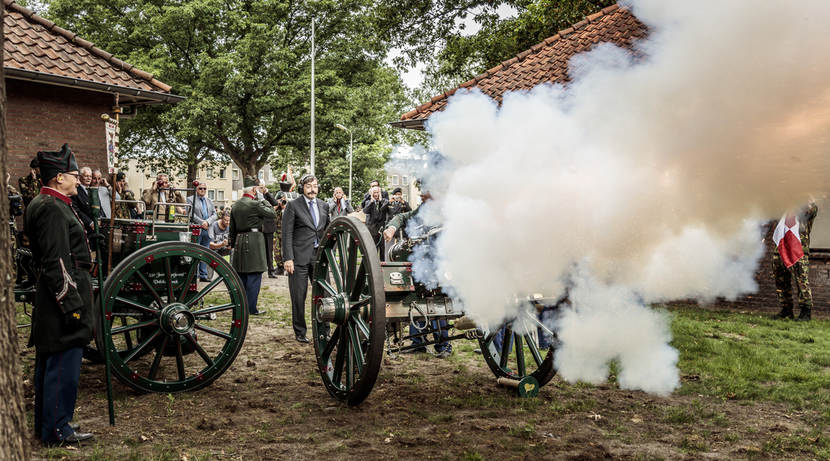 Dat was makkelijker gezegd dan gedaan. Door regelgeving en bureaucratische processen duurde het nog 2 jaar voordat de zaak was beklonken. Maar vanmiddag was dan uiteindelijk de officiële ceremonie, in het bijzijn van de Gouverneur van Limburg, de plaatsvervangend Commissaris van de Koning in Brabant en de mannen en vrouwen van het Regiment Limburgse Jagers.