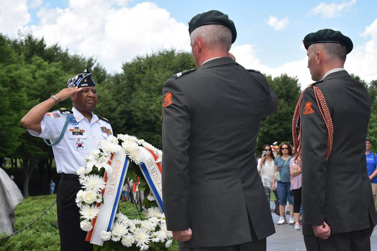 67 jaar na het uitbreken van de Korea-oorlog legde landmachtattaché kolonel Marcel Buis een krans bij het Korean War Memorial in Washington DC. Sergeant-majoor Dennis Oranje completeerde het eerbetoon en las de namen voor van de 125 Nederlandse gesneuvelde militairen.