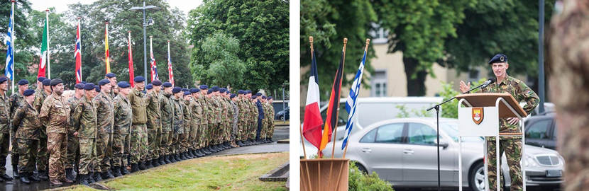 “Vanaf 1 juli moeten we er rekening mee houden te worden ingezet waar en wanneer de NAVO dat nodig acht”, aldus commandant luitenant-generaal Michiel van der Laan tijdens een buitengewoon appel in Münster. “In deze rol commanderen we niet alleen landstrijdkrachten maar coördineren we ook de effecten die Navy, Air en Special Operations moeten behalen. Ik ben er trots op dat de prestatie die we tijdens Trident Jaguar hebben neergezet de persoonlijke aandacht van generaal Scaparotti, Supreme Allied Commander Europe heeft getrokken. Ik ben ervan overtuigd dat we het vertrouwen van de NAVO bij een eventuele inzet absoluut waard zijn,” aldus commandant 1GNC.