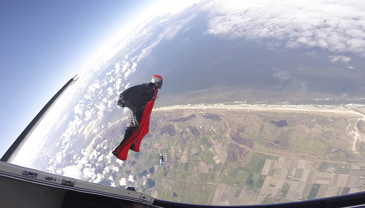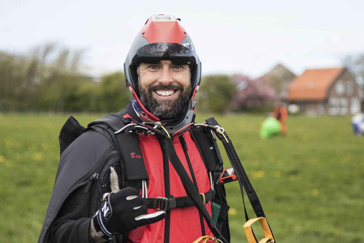 Sebas sprong als luchtmobieler voor het eerst uit een vliegtuig. Dat was in 1995. Inmiddels heeft hij vele honderden sprongen achter de rug, waarvan nu zo’n 20 met een wingsuit.