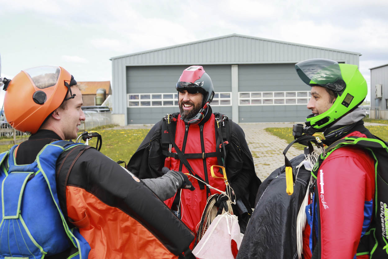 Maar ook: beter opletten. Want springen met een wingsuit is niet zonder risico. Het pak maakt de springer een stuk wendbaarder. Houd je 1 arm gestrekt en de ander gebogen, dan vangt de ‘vleugel’ volop wind en kantel je. Wie te vroeg zijn armen spreidt, kan tegen de vliegtuigstaart worden geblazen. En bij het trekken van de parachute is de kans groter op een twist, oftewel: gedraaide parachutelijnen. “Dan is het hard werken”, zegt Sebas. “Bij een sprong zonder wingsuit maak je bij een twist een fietsende beweging met je benen zodat de lijnen losdraaien. Maar in een wingsuit zitten je benen vast.”