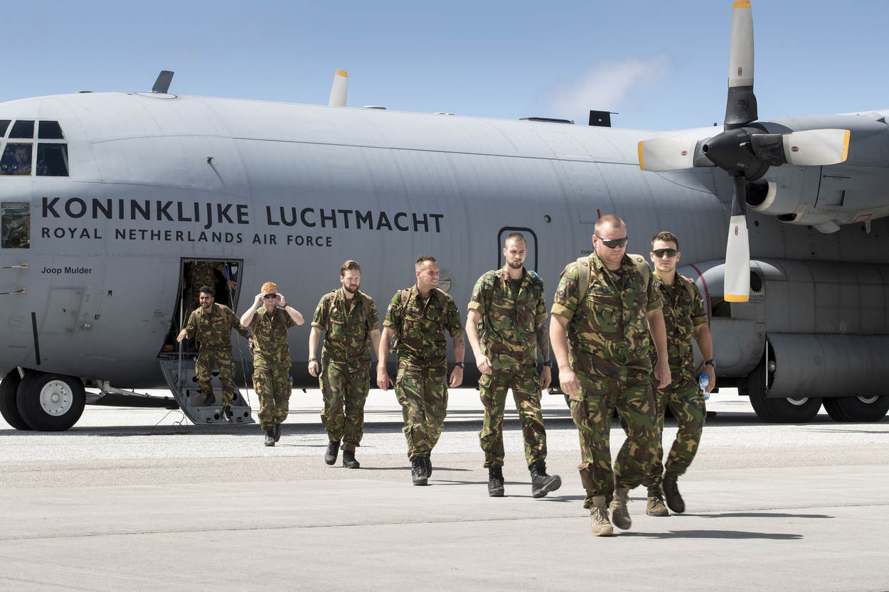 “We runnen met 100 man een heel vliegveld”, zegt kapitein Elwin, commandant C-compagnie 13 Infanteriebataljon. Een dag eerder nam de eenheid de beveiliging en ondersteuning van de luchthaven over van ongeveer 40 man van 12 Infanteriebataljon, die als eerste na de orkaan in actie kwamen.