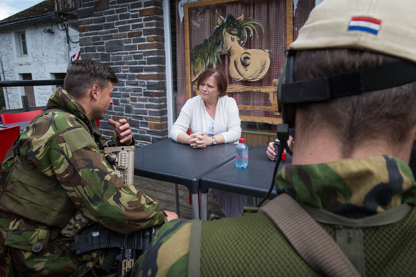 Van Mali naar België; in geografisch opzicht een grote stap, maar in taalkundig opzicht geen verrassende. Alderden legt uit: “In de Belgische Ardennen oefenen zorgt voor 2 grote voordelen. Ten eerste spreekt men hier Frans waardoor werken met een tolk vereist is. Dat is ook zo in Mali. Communiceren via een tolk vraagt om ervaring, omdat men geneigd is via de tolk te praten in plaats van direct tegen de gesprekspartner. Op deze manier informatie proberen te halen bij de Frans sprekende bevolking is zeer leerzaam. Ten tweede vormen de Ardennen een bijzondere locatie om te trainen. Het terrein wijkt af van wat we gewend zijn in Nederland en dat prikkelt de kaartleesvaardigheid en het tactisch inzicht.”