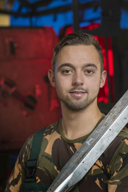 Ik rondde een jaar geleden de VeVa-opleiding af. Dit is mijn eerste functie, maar ik hoop dat ik het na 3 jaar mag blijven doen. Het leukste aan deze baan vind ik de afwisseling. Het is bepaald geen 9 tot 5 baan. Als een Boxer op de heide kuren krijgt, gaan wij er naartoe. Meestal repareren we het mankement en gaat de oefening door. Anders slepen we ‘m weg.