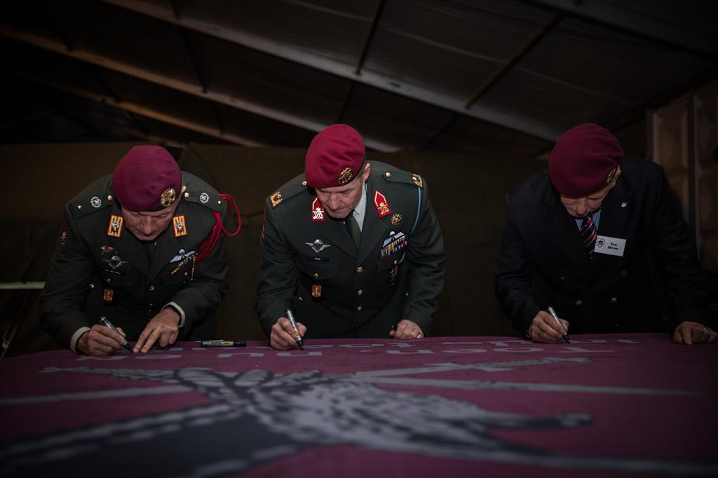 “Welkom thuis”, zo begroette commandant brigadegeneraal Ron Smits de circa 1.000 rode baretten die waren afgekomen op de reünie. De eenheid vierde deze maand haar 25-jarig bestaan in Schaarsbergen.