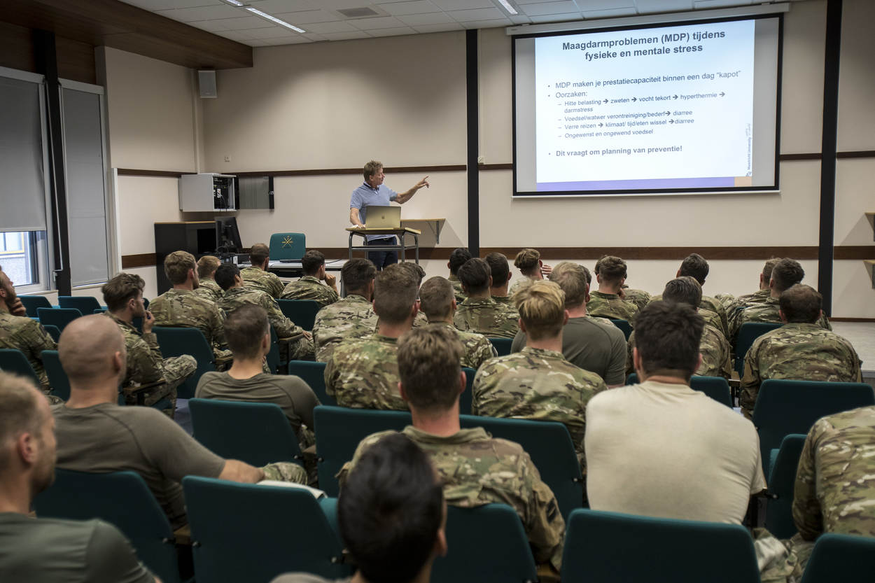 Zijn er straks dan geen uitvallers meer? Dat kan majoor Frans Erkelens niet bevestigen. “Het gaat natuurlijk om meer dan voeding. Al enkele jaren zijn we bezig met het programma Invictus, dat zich richt op de hele fysiologische cirkel rondom de militair”, aldus de commandant OTC Speciale Operaties. “Iedereen die iets kan betekenen voor de inzetbaarheid van de militair, denk bijvoorbeeld aan een personal trainer, wordt ingezet. Ook worden de mannen gemotiveerd om sneller contact te zoeken met een arts als ze pijn ervaren. Er wordt een zogeheten human performance team om de operator heen gecreëerd, iets wat in de topsport heel gebruikelijk is.”
